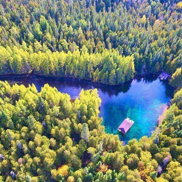Located in Palms Book State Park in Manistique this spring is a spectacular place to visit in the Upper Peninsula of Michigan. A hollow centered raft with a cable takes you out to the center of the lake and allows viewing underneath and around you. The trail is primarily used for hiking walking nature trips and bird watching.
