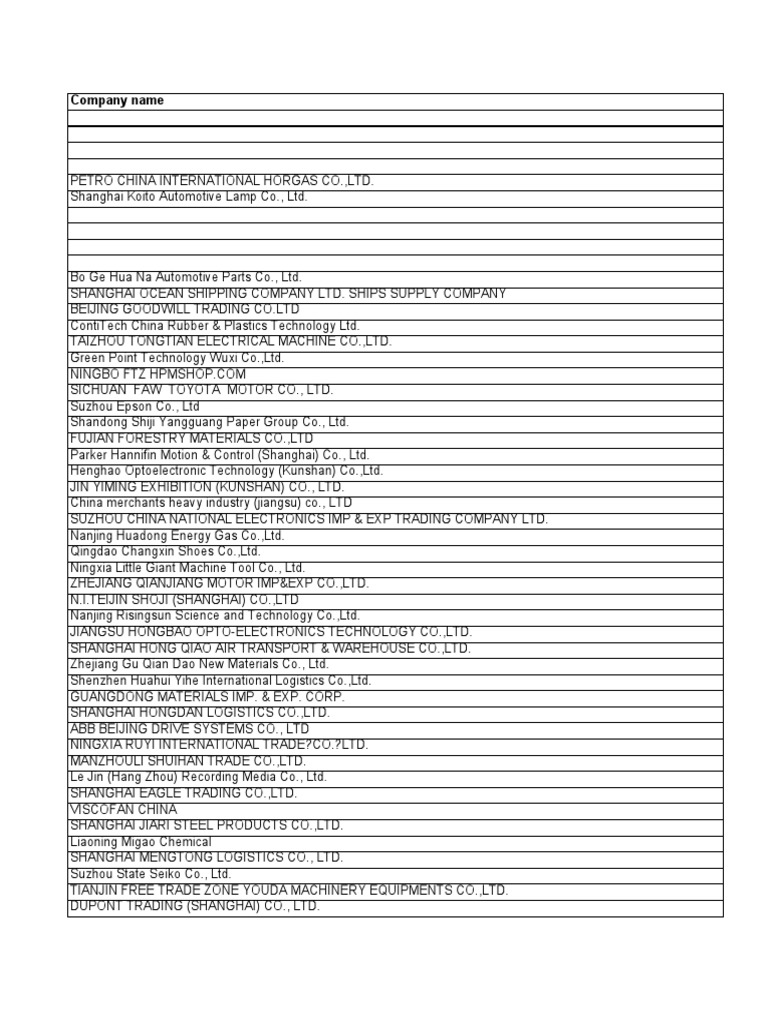 List Of Chinese Importers Of Product S Classified Pdf Shanghai Shenzhen