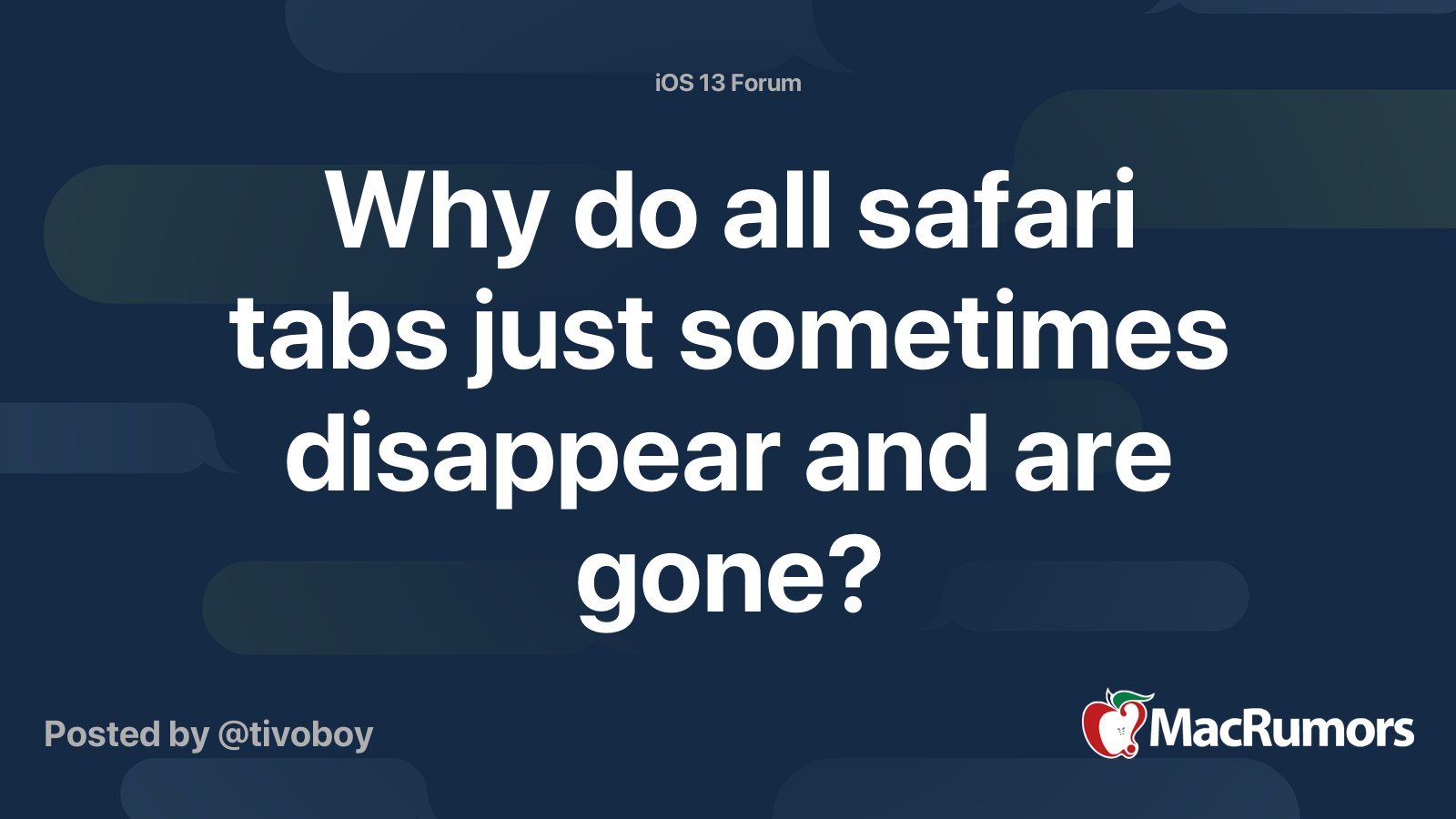 Why Do All Safari Tabs Just Sometimes Disappear And Are Gone Macrumors Forums
